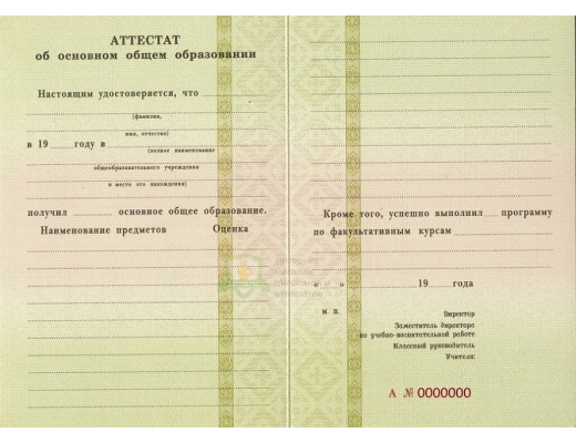 Если вы планируете купить аттестат за 9 класс 1994 - 2006 год, не сомневайтесь – получаете подлинный документ, который заполняют профессионалы, имеющие многолетний опыт работы в сфере образования. Документ на 100% соответствует всем требованиями Министерства науки Российской Федерации.