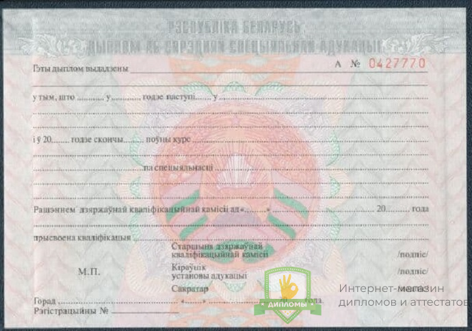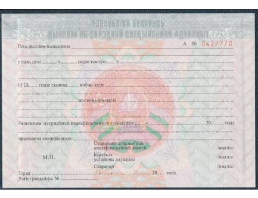 Если вы планируете купить диплом техникума Белоруссии 1994 - 2010 год, не сомневайтесь – получаете подлинный документ, который заполняют профессионалы, имеющие многолетний опыт работы в сфере образования. Документ на 100% соответствует всем требованиями Министерства науки Российской Федерации.