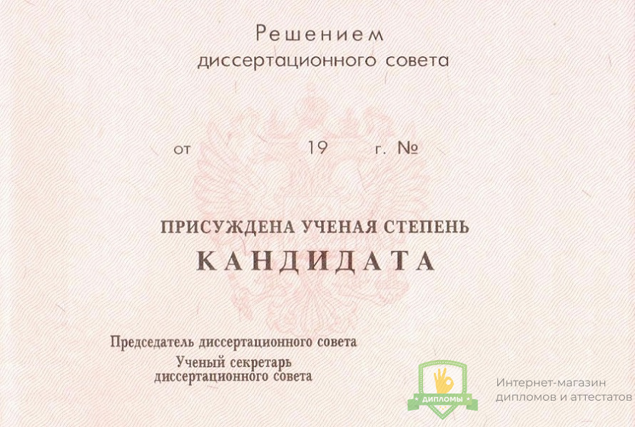 Клиентам предлагаем комфортные и выгодные условия покупки дипломов кандидата наук 1993 - 1999 год: