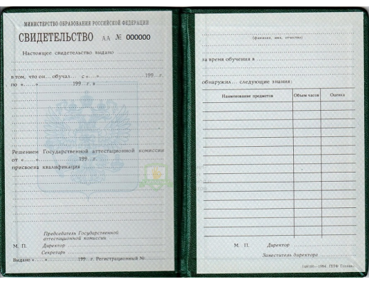 Купить свидетельство о повышении квалификации СССР до 1995 год